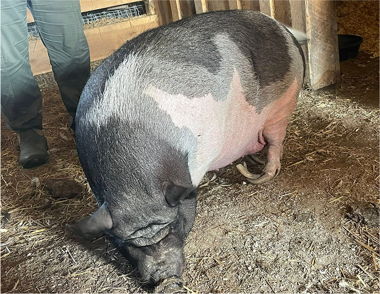 Despite these challenges, Zora is the sweetest, sassiest, and most opinionated pig! We absolutely love her spirit. In the short time we’ve been together, we’ve learned that she LOVES grapes and doesn’t think much of pig food (we’re working on that). We can’t wait for her to heal from her surgery so that she can be introduced to a paddock where she can roam on grass, root to her heart’s content, and meet other pigs.